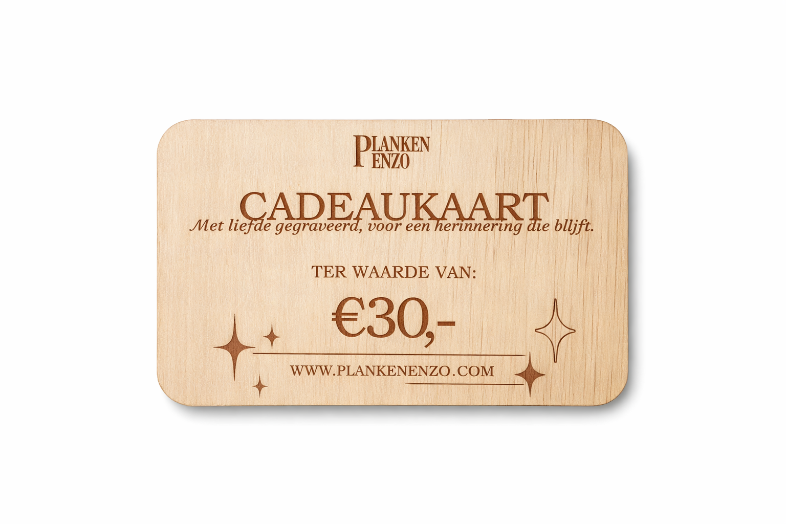 Cadeaubon 30 euro te besteden op onze webshop: www.plankenenzo.com
